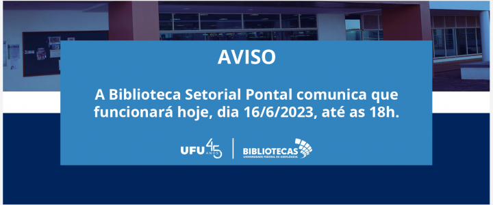 ATENÇÃO! Hoje, 16/6/2023, a Biblioteca Setorial Pontal funcionará até as 18h