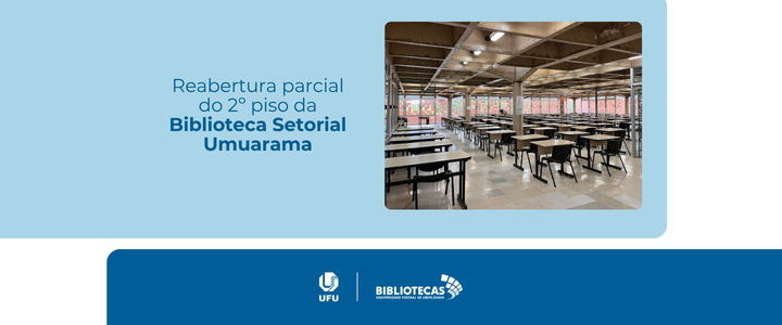 As Bibliotecas UFU informam sobre a reabertura parcial do segundo piso da Biblioteca Setorial Umuarama.