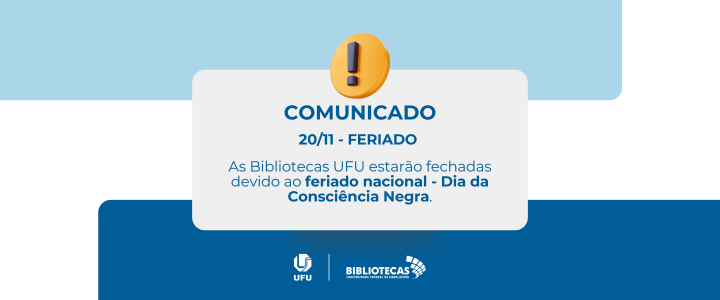 Informamos que as Bibliotecas UFU estarão fechadas no dia 20 de novembro, em razão do feriado nacional do Dia da Consciência Negra.